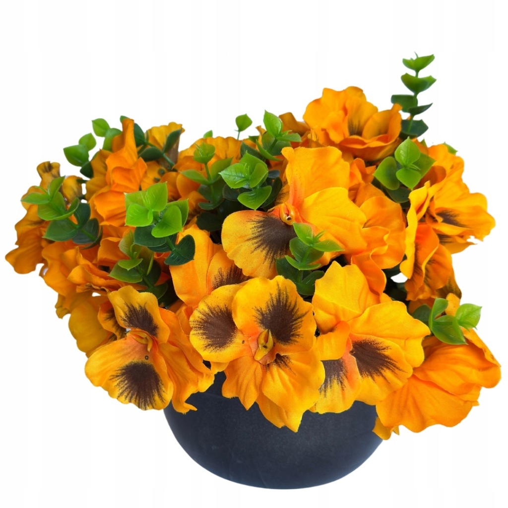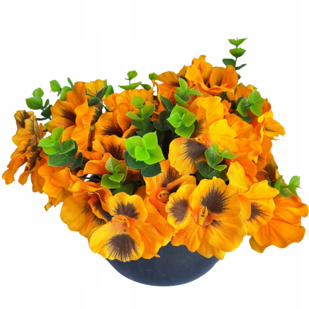 Kwiat Sztuczny Bukiet Bratków Dekoracja Pomarańczowy Bratek W Doniczce Ozdoba Stroik