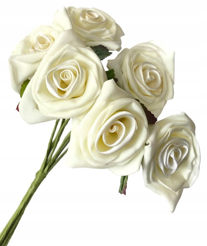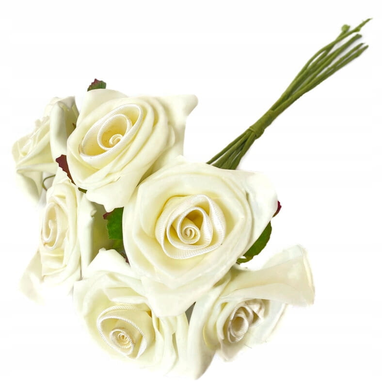 Piankowe Róże Bukiet Kremowy 6 Gałązek Kwiaty Sztuczne