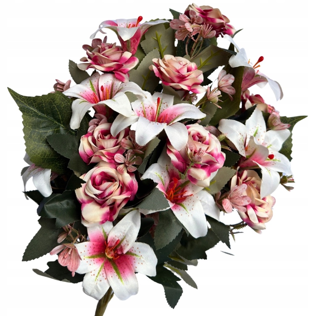 Sztuczne Kwiaty Róża Lilia Bukiet 18 Gałązek Bukiecik Palemka Ozdoba Do Wazonu